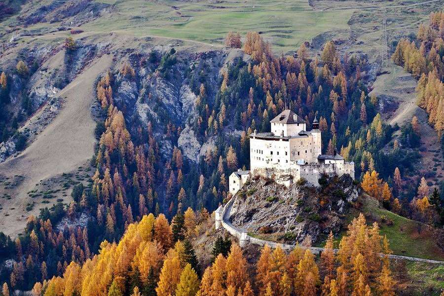 Perched on top of a rocky crop on a hill, Tarasp Castle makes for one of the most scenically located castles in Switzerland to see and dates back to the 11th-century.